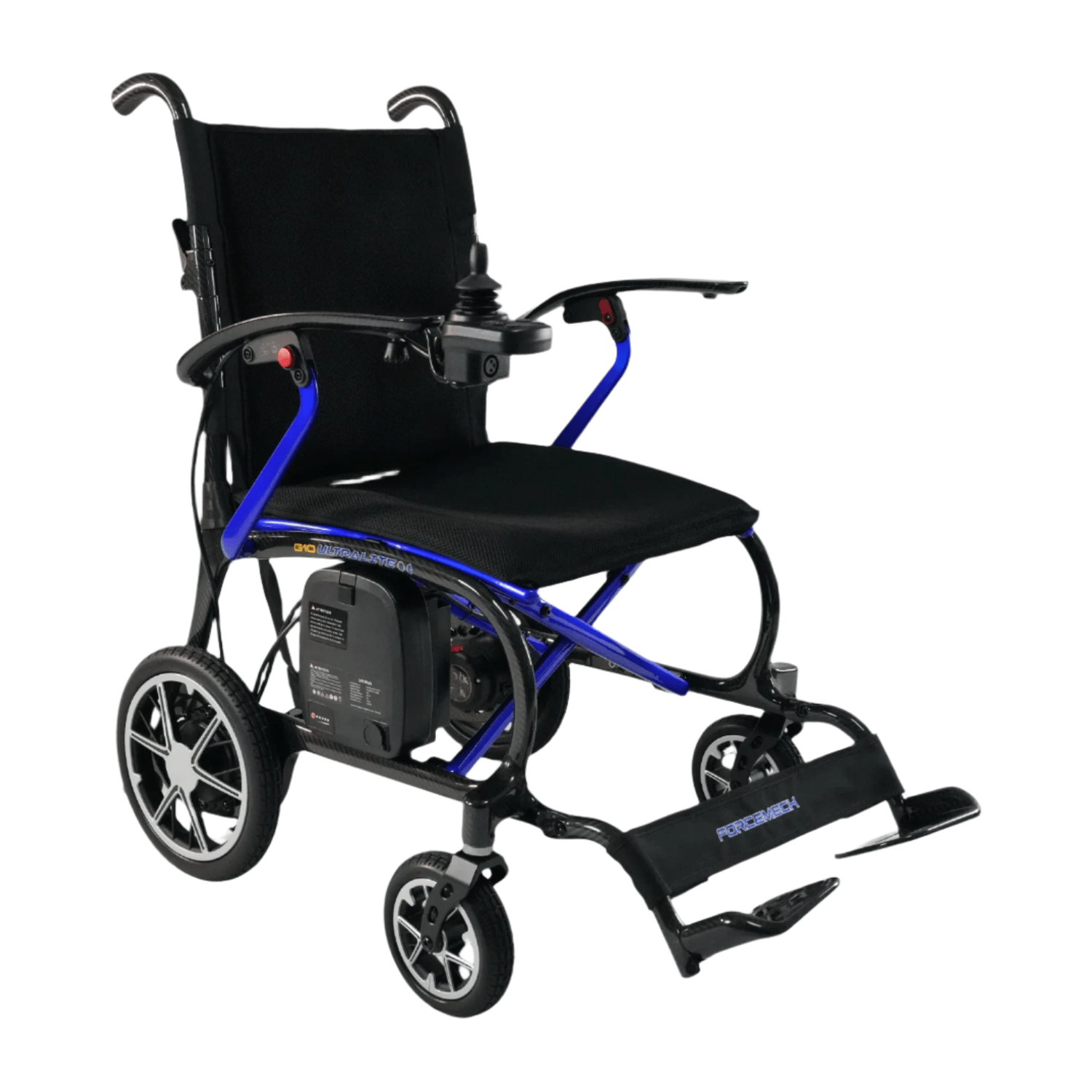 Forcemech Ultralite G10 Carbon Fiber Power Wheelchair - Blue is backordered and will ship as soon as it is back in stock.