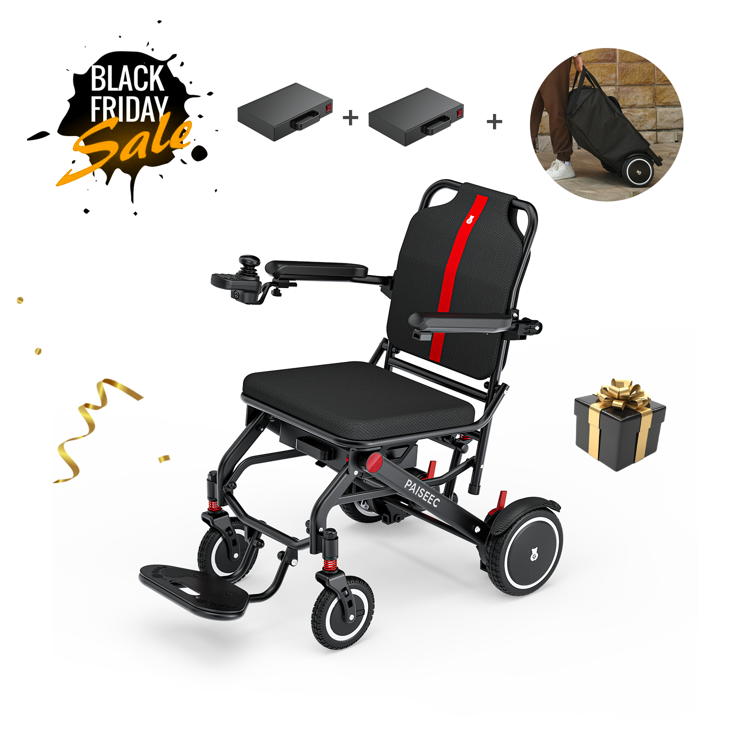 Paiseec Lightweight Electric Wheelchair Q3 - Standard battery - 11 Miles / Not included is backordered and will ship as soon as it is back in stock.