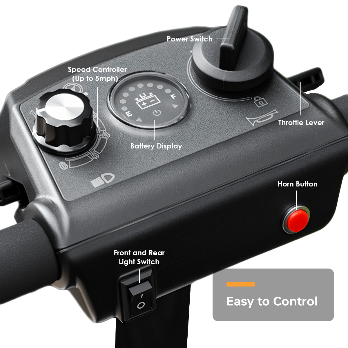 The D3 is a compact and easy-to-use lightweight mobility scooter, perfect for those looking for a convenient way to get around. This 4-wheel scooter features a lightweight design, perfect for everyday short trips, both indoors and outdoors. It comes with an adjustable seat, foldable frame and long-lasting battery, making it very easy to carry and store for daily trips.